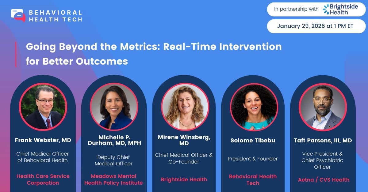 Measurement-based care is widely adopted—but too often, data lives in dashboards instead of shaping care in the moment. In this CMO-led roundtable with Behavioral Health Tech, Brightside Health’s own Chief Medical Officer Mimi Winsberg, MD and other prominent clinical leaders come together to explore what truly actionable measurement-based care looks like in practice.