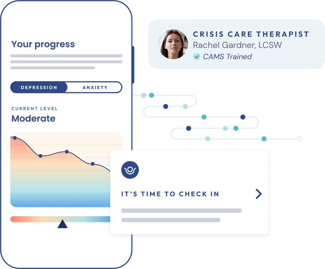 We fully integrated CAMS into our virtual care model and enhanced it with technology. We facilitate every aspect of the program in live 1:1 video sessions, and supplement it with ongoing engagement tools like direct messaging and proactive progress tracking. Our SmartEMR also offers streamlined CAMS documentation for clinicians so they access advanced tracking to monitor suicide risk and treatment progress.