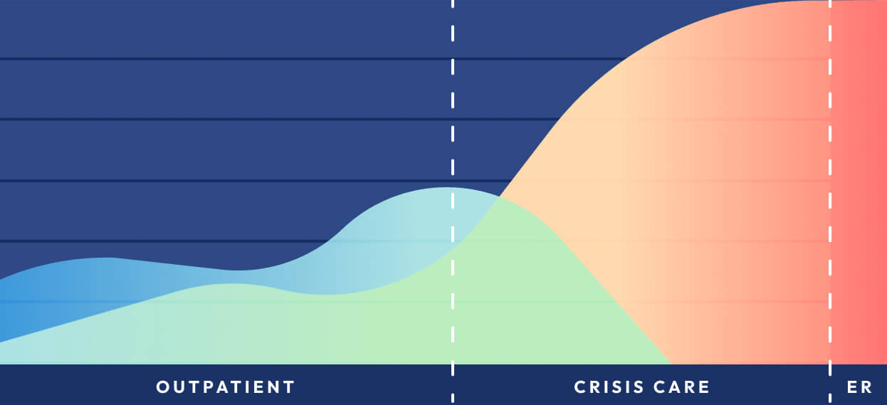 We fill the critical gap between routine services & the emergency room, providing specialized care for individuals experiencing elevated suicidal thoughts and behaviors.