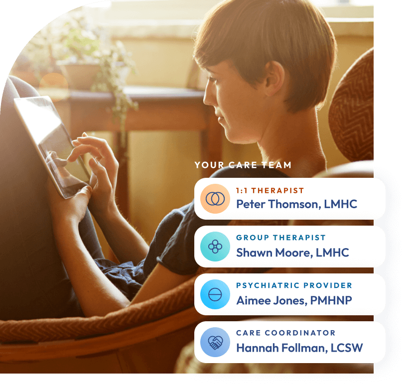 Every patient is supported by a multidisciplinary care team, including an individual therapist, group therapist, psychiatric provider, and care coordinator.